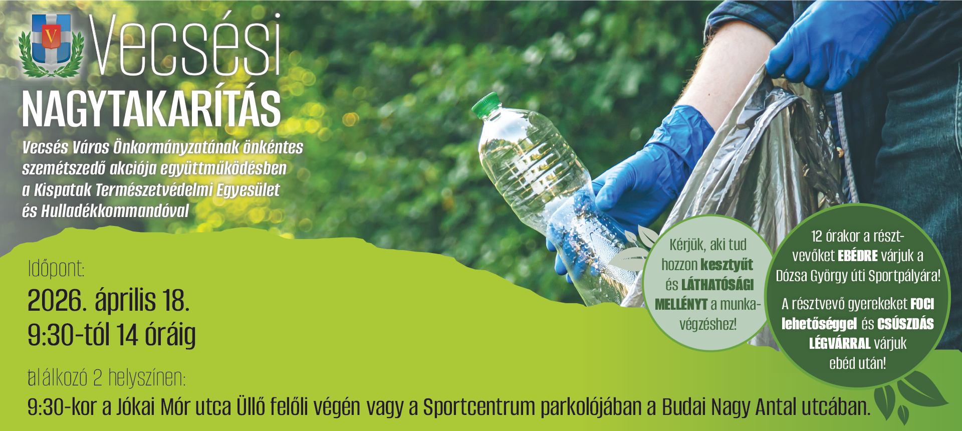 Az önkéntes szemétszedő akció időpontja: 2026. április 18. szombat 9.30-tól 14.00 óráig.