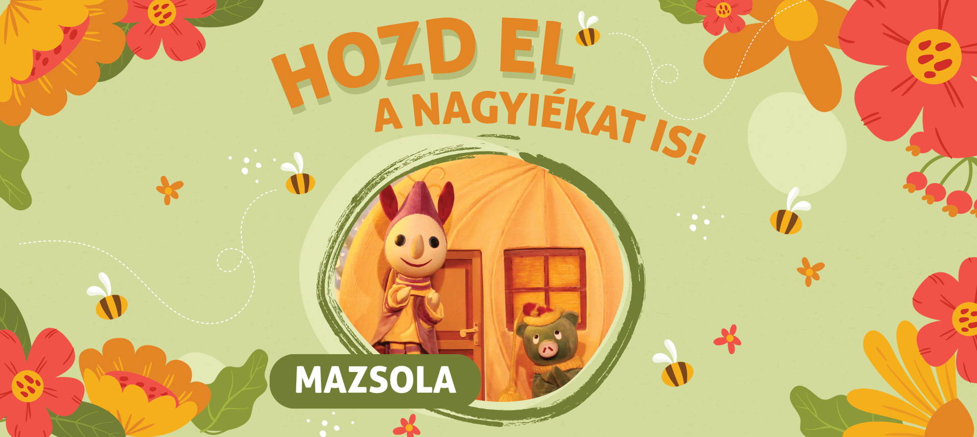 Mazsola, a gazdájától elkergetett induri-pinduri malac és a melegszívű Manócska felejthetetlen történetei elevenednek meg a bábszínpadon. Az előadás Bálint Ágnes eredeti meséjéből íródott, s nagy sikerét az emlékezetesen kedves bábfigurák garantálják.