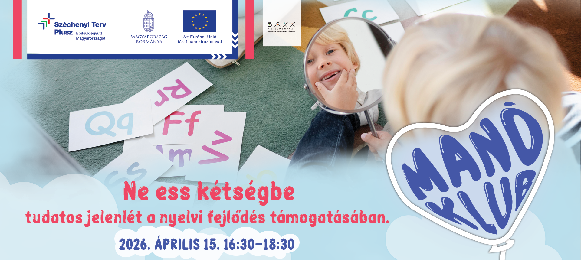2026. április 15. 16.30 óra: Ne ess kétségbe – tudatos jelenlét a nyelvi fejlődés támogatásában: Pál Erzsébet, logopédus előadása